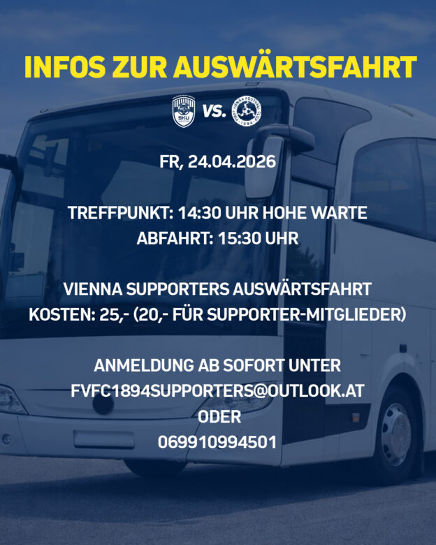 Dann hoffen wir auf gute Wetterbedingungen, dass das Match stattfinden kann und feiern wir eine ordentliche Fußballparty. Gemeinsam einen lautstarken Support für unsere Mannschaften.