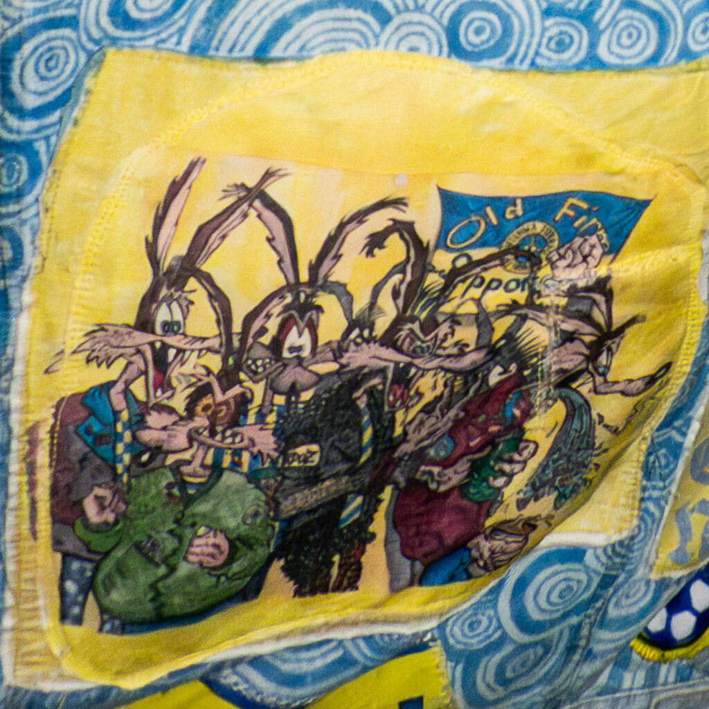 Zunächst wurden lediglich Aufkleber erstellt, schließlich eine Zaunfahne produziert, die seither den Fanklub bei nahezu allen Spielen begleitet. Die Zaunfahne hat bereits Patina, ziert sie doch einige „Verletzungen“, die von Fußballschuhstoppeln stammen, wenn das Banner auf Dorfplätzen nicht ausreichend hoch angebracht werden konnte und zum Teil am Rasen neben der Outlinie zu liegen kam. Die Zaunfahne wurde auch dem wohlwollenden Rothschild-Urenkel Geoffrey R. Hoguet auf der Hohen Warte präsentiert.